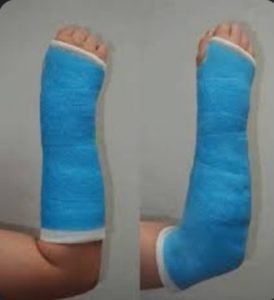 (شکل ۵) : بی حرکت کردن شکستگی بوسیله گچ بازو کوتاه و بازو بلند.