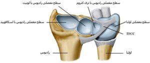 شکل۱. در این شکل استخوان های رادیوس و اولنا و TFCC   و اتصالات بین آنها نشان داده شده است.