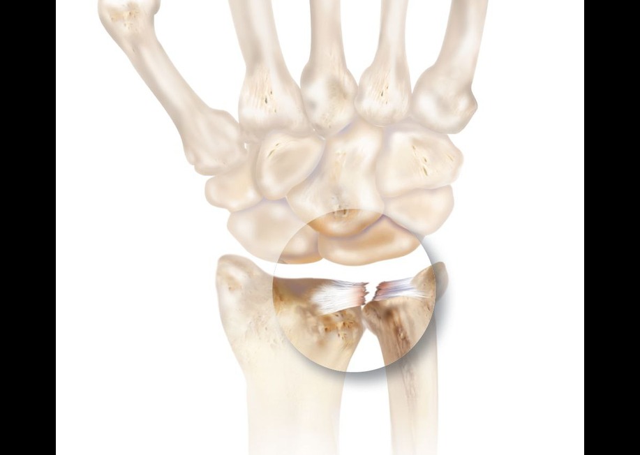 در فضای بین استخوان ساعد (رادیوس و اولنا ) و استخوان های مچ دست (لونیت و تریکوئتروم )فضای خالی وجود دارد ،در این فضا بافت مثلثی فیبری-غضروفی (TFCC) استخوان های ساعد را به استخوان های مچ دست متصل می کند. این ساختار که از رباط‌ها ، تاندون‌ها و غضروف ها تشکیل شده و حالت بالشتک مانندی دارد به قدرت و تثبیت مچ دست کمک می کند‌( شکل ۱).